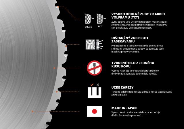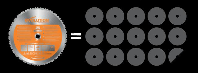 Aká je životnosť našich kotúčov? Naše 355 mm kotúče na viaceré materiály sme otestovali a dosiahli sme priemerne 1000 rezov na kotúč pri rezaní štvorcových oceľových rúr s hrúbkou 6 mm a rozmermi 50x50 mm! Pri použití rovnakých testovacích kritérií dosiahol bežný brúsny kotúč len 69 rezov. To znamená, že jeden kotúč Evolution vydrží rovnako dlho ako 14,5 bežných brúsnych kotúčov, čo znamená, že naše pokročilé TCT kotúče ponúkajú nižšiu cenu na rez v porovnaní s brúsnymi kotúčmi.