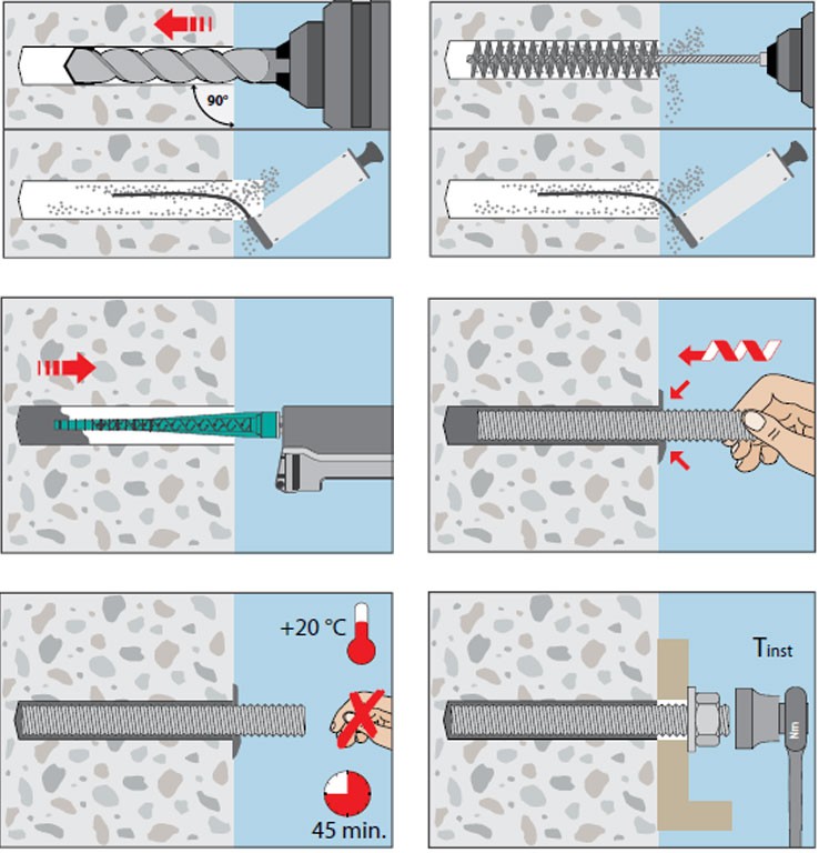 Dvojzložková chemická injektážna kotviaca zmes pre vlepovanie závitových prvkov a betonárskej výstuže do mnohých druhov podkladových materiálov.