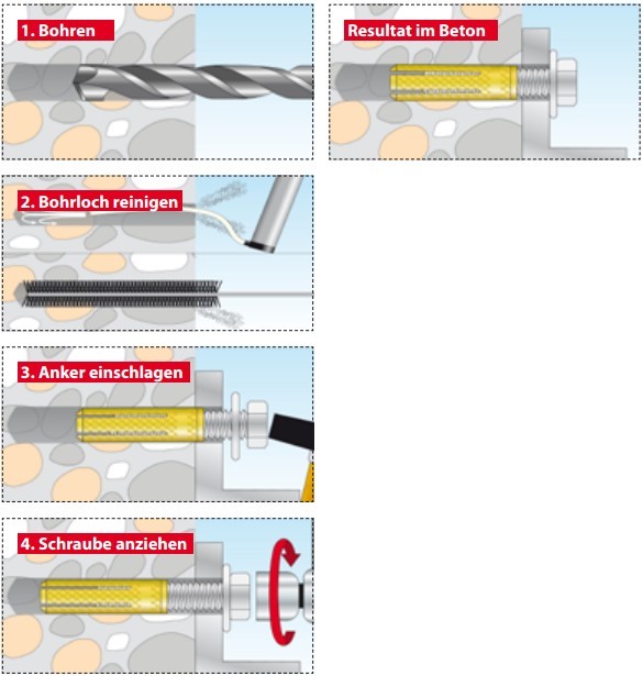 Mosadzná stropná rozpínacia kotva s vnútorným závitom do plných stavebných materiálov. MSD