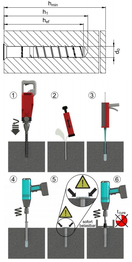 Oceľová skrutka s vnútorným závitom na kotvenie v asfalte