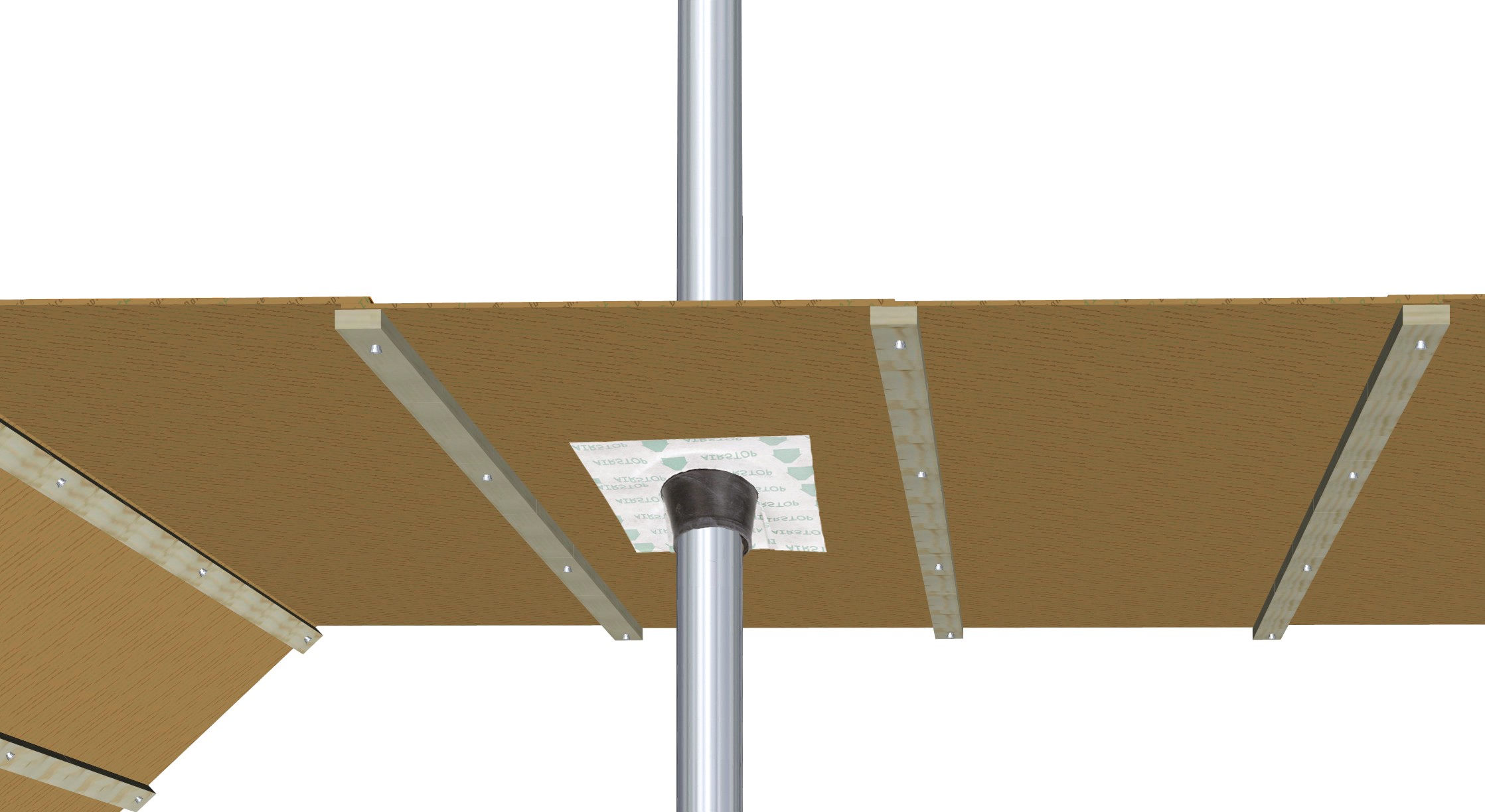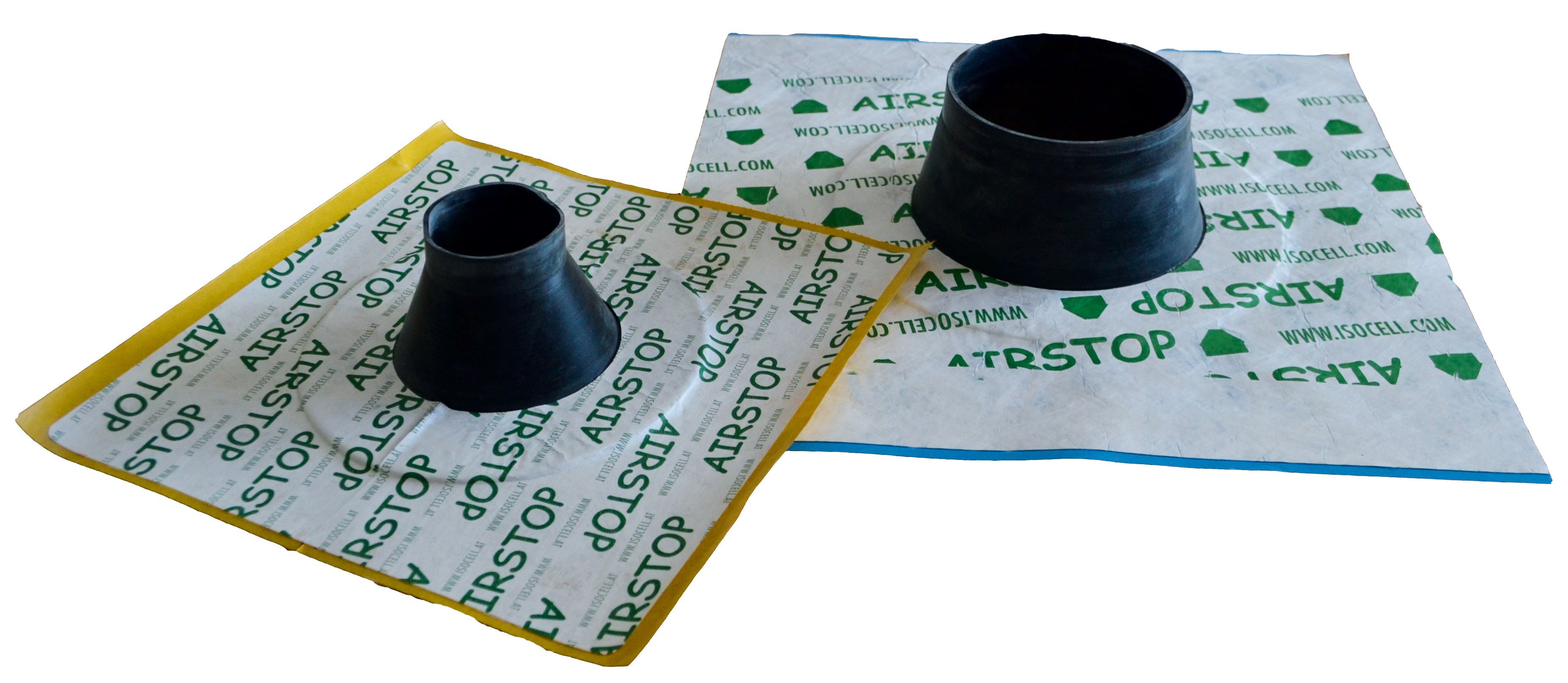 Tesniaca manžeta k trvalému vzduchotesnému a parotesnému utesneniu otvorov a priechodov potrubí v konštrukciách.